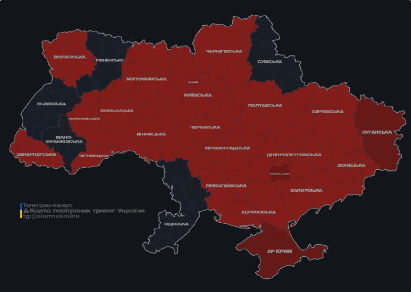 Вночі, 31 липня, в Україні оголошена повітряна тривога. "Почервоніла" вся країна. У Повітряних силах України попереджають про загрозу атаки безпілотників та балістики.