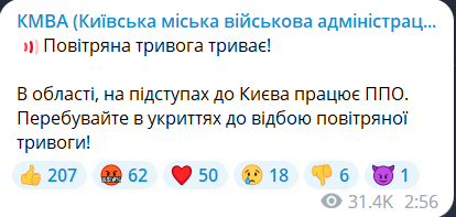 Оновлено 02:56. У КМВА розповіли, що працюють сили ППО.