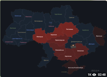 Моніторингові канали попереджають, що мапи повітряних тривог додалася Черкаська область.