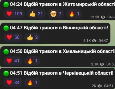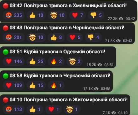 Повітряна небезпека тепер оголошена у Хмельницькій, Чернівецькій та Житомирській областях.