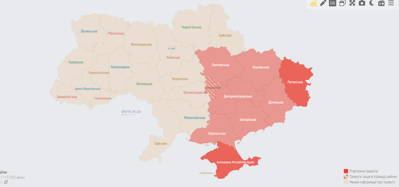 В Україні лунає повітряна тривога. Загроза є для східних та південних регіонів.