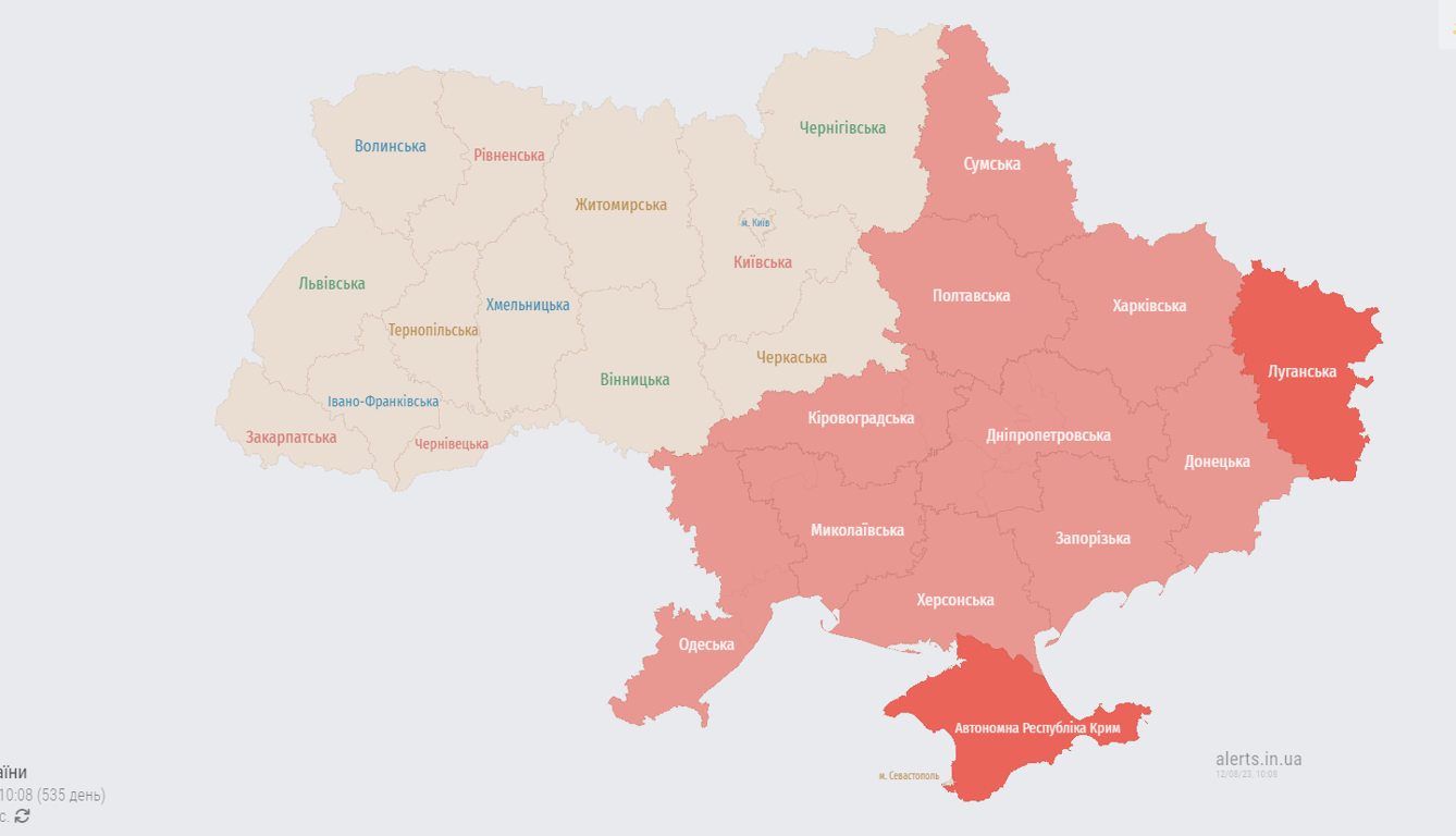 В Україні триває повітряна тривога. Наразі є загроза застосування балістичного озброєння.