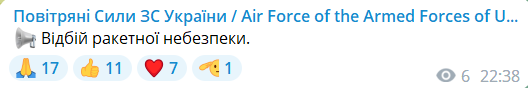 22:38 Оголошено відбій ракетної небезпеки.
