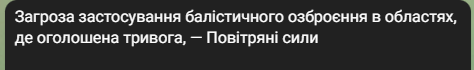 В Україні повітряна тривога: загроза ракет та безпілотників