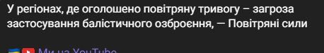 Моніторингові канали повідомляють про загрозу застосування балістики.