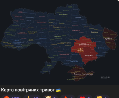 Мапа повітряних тривог тепер така: