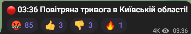 Тривога у Київській області — загроза застосування ворогом ударних БпЛА.