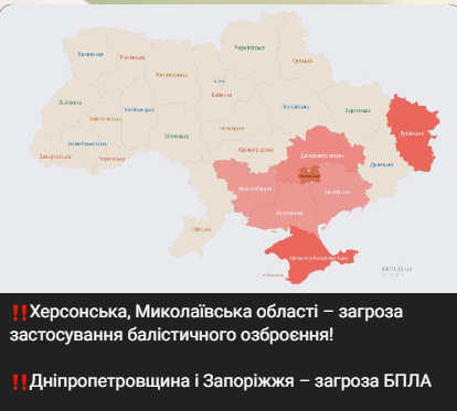 На цей момент у Запорізькій, Дніпропетровській, Миколаївській та Херсонській областях була оголошена повітряна тривога.