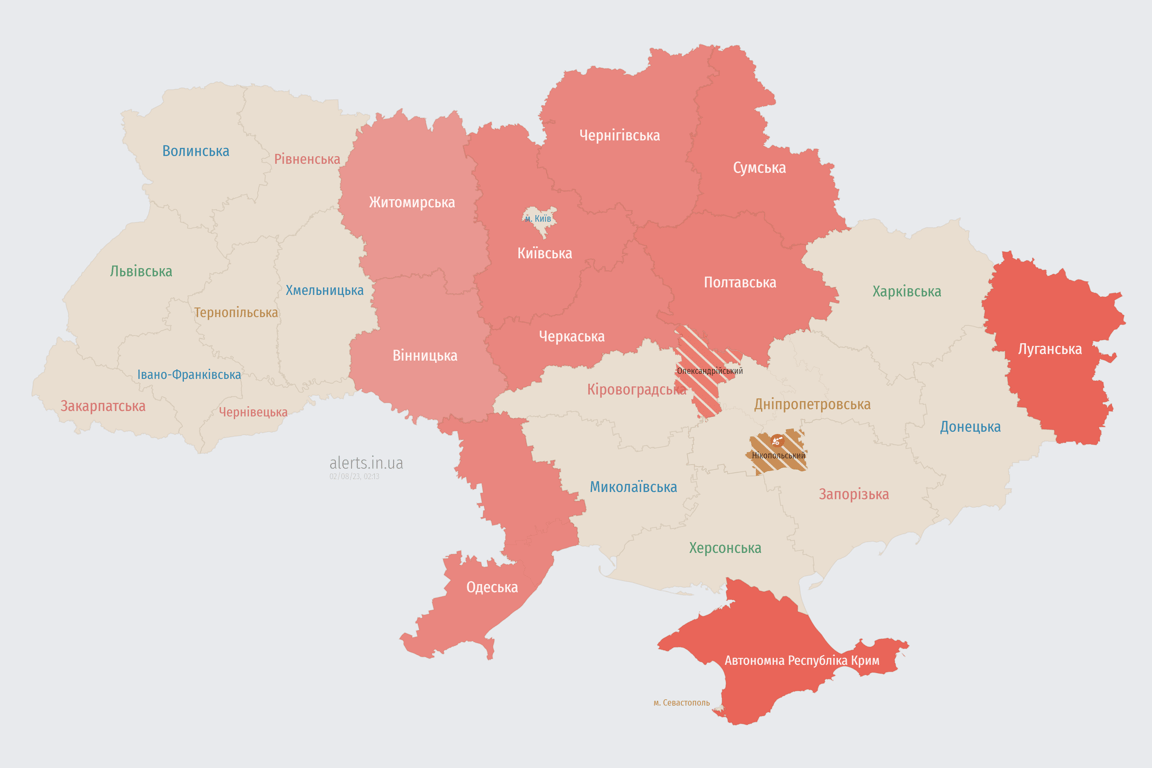 Оновлено 02:12. Повітряна тривога в областях досі зберігається.