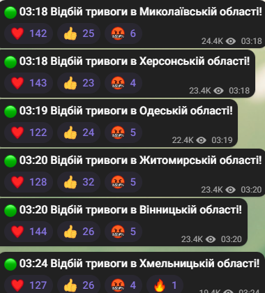 Практично відразу по деяких областях почали оголошувати відбої повітряної тривоги.
