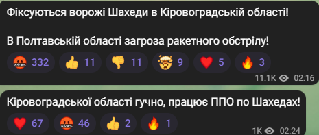 Моніторингові канали повідомляють, що після другої ночі у Кіровоградській області почали лунати вибухи. Попередньо, це працює українська ППО.