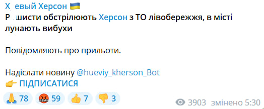 Оновлено 05:37. У Херсоні чути потужні вибухи. За даними місцевих ЗМІ, у місці є прильоти.