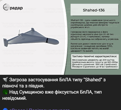 Орієнтовний час входження в повітряний простір України — близько першої години.