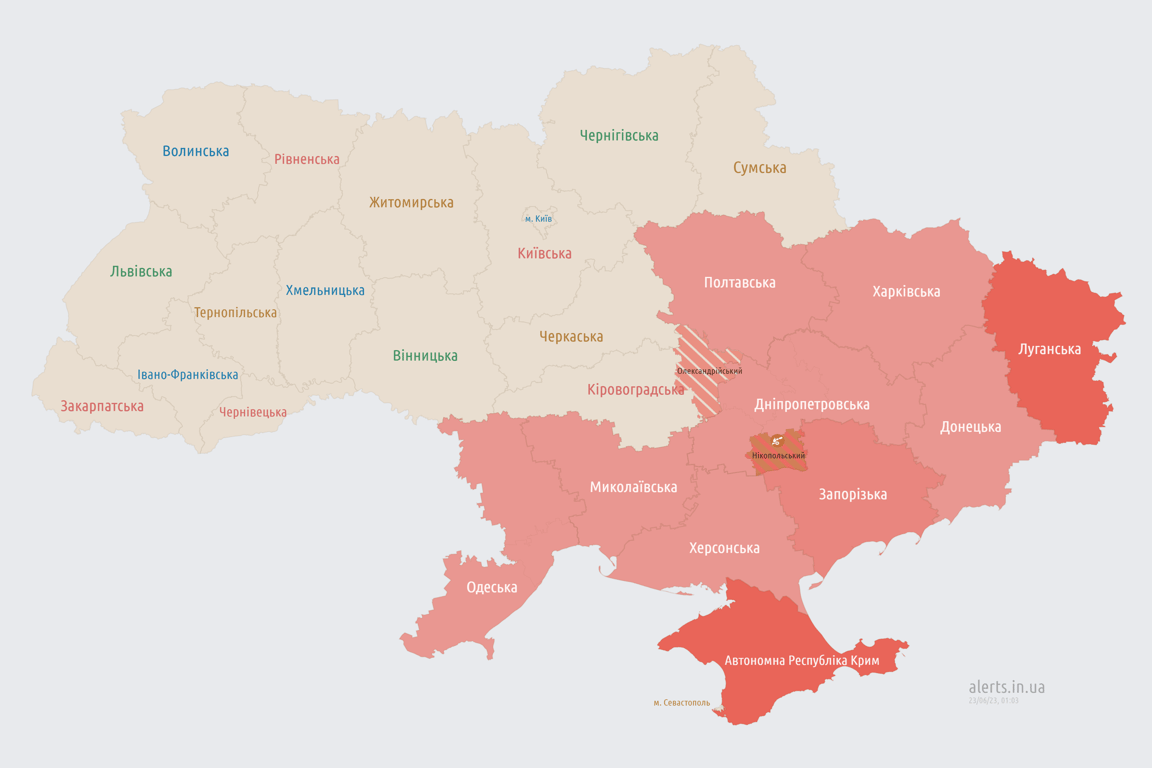 Вночі в Україні 23 червня знову неспокійно, повітряну тривогу оголошено в Запорізькій області. Також є інформація про ракетну небезпеку.