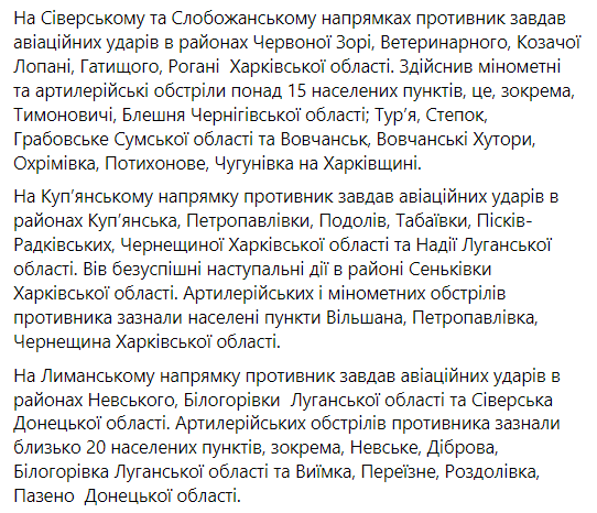 Також повідомляється, що протягом минулої доби відбулось 20 бойових зіткнень.
