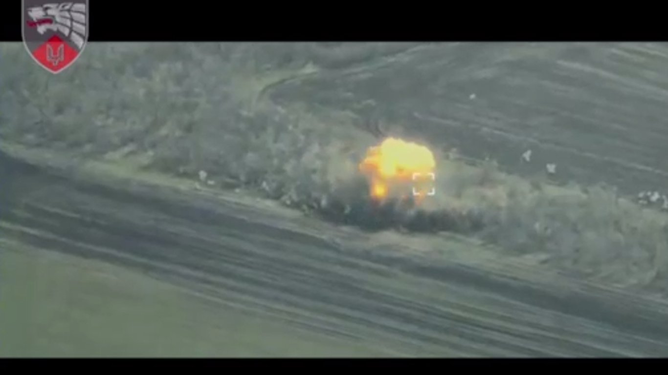 На відео видно, як після влучання артилерії військова техніка окупантів вибухає, а в небо здіймається густий дим.